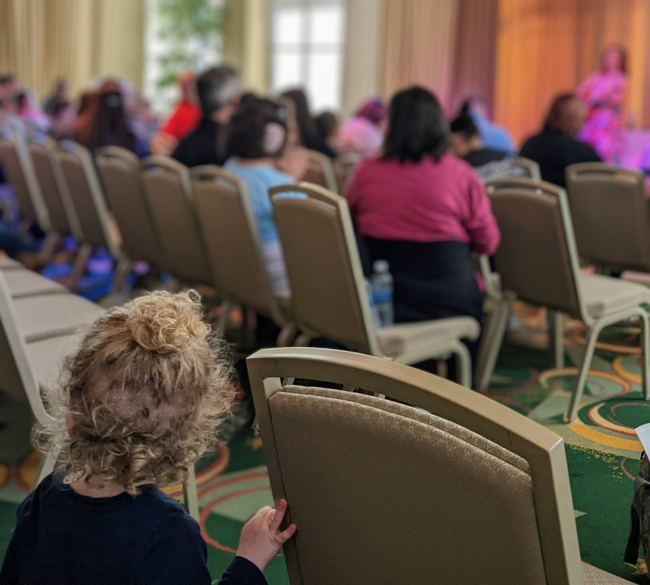 And yet, when we settle into our seats and you look around, you can tell she seems unsettled. Maybe overwhelmed? Unsure what to make of her surroundings? A baby born during the pandemic, this is possibly one of the largest crowds she’s been around.